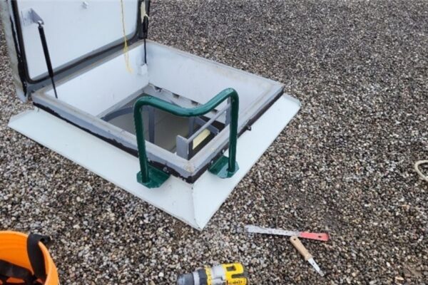 We are certified and licensed to install a range of flat roof safety systems in Mississauga; including rooftop guardrails, roof hatch guards, access ladders, skylight guardrails, travel restraint systems and more.