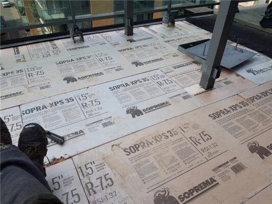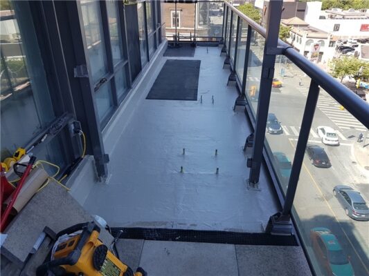 This project was obtained through a tendering roofing process where due to the complexity of the project the client requested the new waterproof flat roofing process to be done in a cold applied coating system which carried a 20 year warranty. The challenges with the detailing at the railing, anchors and by doors and windows were overcome by working closely with the manufacture to ensure all warranty criteria were met. The client was very happy not only with the roofing work but also with the degree of cleanliness and respect given to the building and its residence throughout the duration of the project