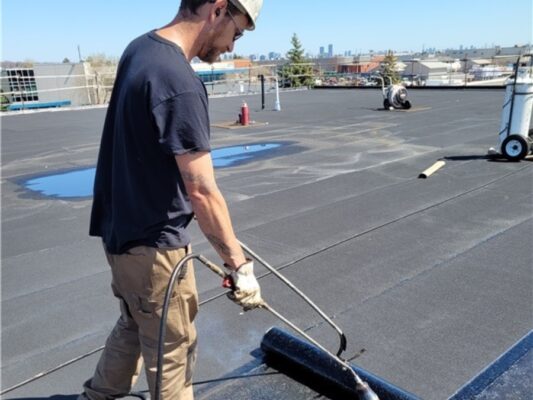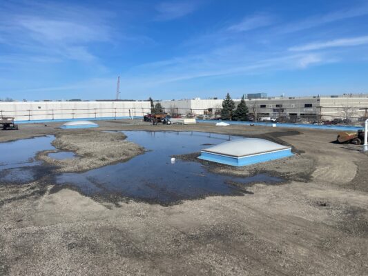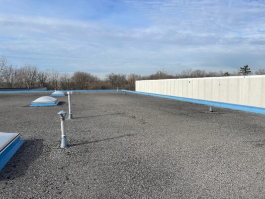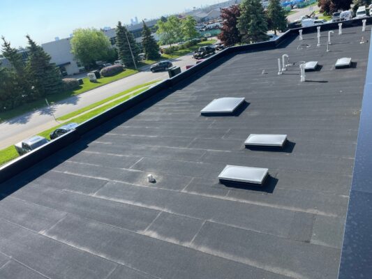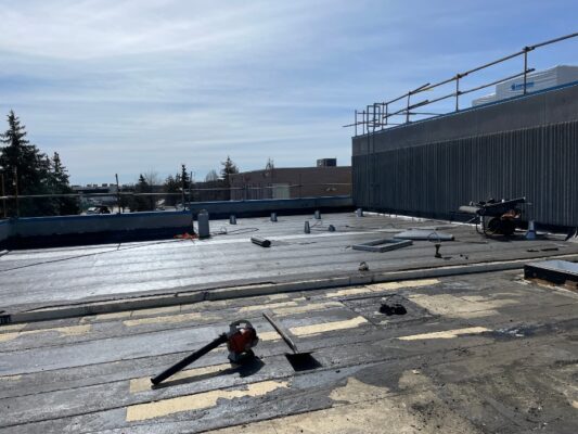 Our client sought to upgrade a building in their portfolio for their own use. After completing several other enhancements, it was time for a flat roof upgrade with a roof membrane peel in Vaughan. The existing 4-ply built-up membrane was worn out, but the 2.5” poly iso insulation was still in good condition.