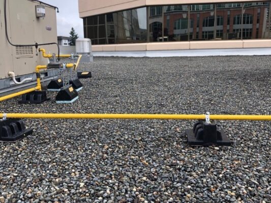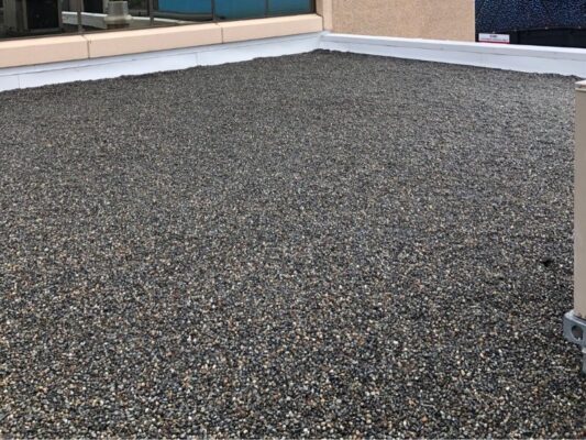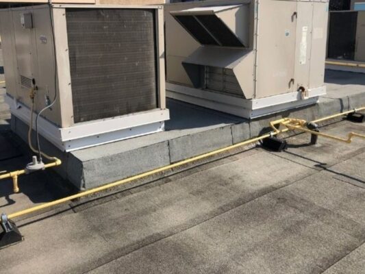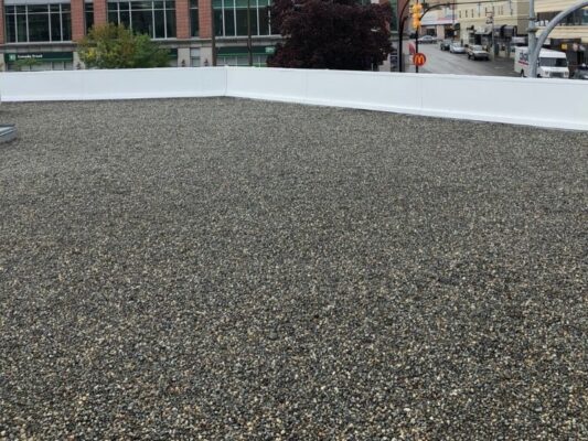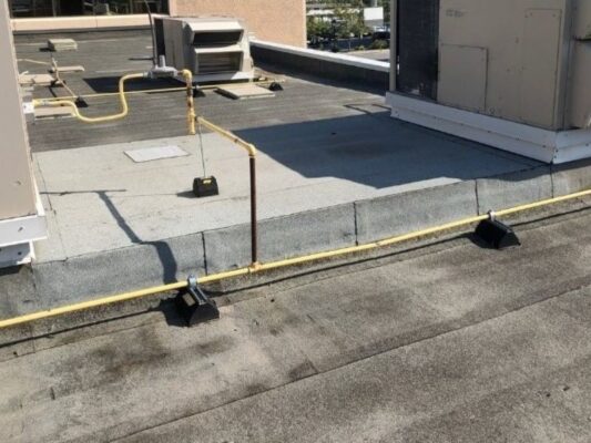 Our talented team recently had the opportunity to do flat roof restoration in Vaughan. A 5,000-square-foot 2-ply modified bitumen roof we restore and make it like new! We first primed and recovered all flashings and penetrations with an advanced peel & stick cap sheet membrane. Any blisters or problem areas we found were carefully cut out before repairing them also using our peculiar peel & stick technique. We then flood-coated the entire roof in resat material embedded within crushed gravel for further protection against damage caused by weather elements. For finishing touches, brand new sheet metal flashings along with gas line supports were installed while the painting of these lines was done too – giving this already beautiful project a gorgeous look! See below how much difference there is between ‘before’ versus ‘after’, courtesy of us!