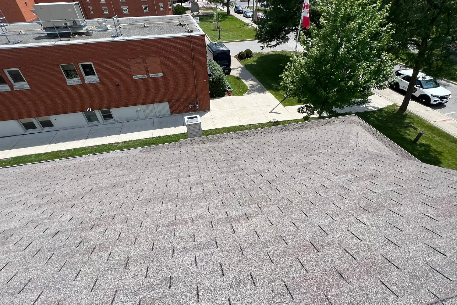 Industrial Roofing Services Limited was selected to complete a full sloped roof replacement at the Kawartha Lakes Police Station, upgrading the existing roofing system to a longer-lasting architectural shingle solution. The original 3-tab shingles had reached the end of their service life and required complete removal to ensure the building remained fully protected.